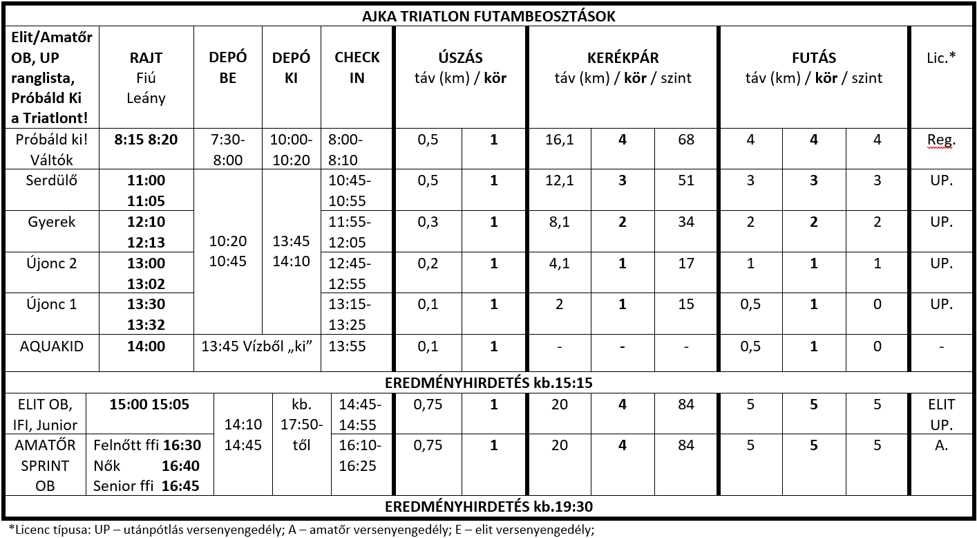 ▪ Az Utánpótlás és a Sprint OB versenyeken a részvétel feltétele a versenyengedély kiváltása, Próbáld ki a triatlont és a VÁLTÓK futamában nem szükséges a versenyengedély. Versenyengedély kiváltásáról érdeklődni: +36 70 399 9771, sportszervezo@triatlon.hu.